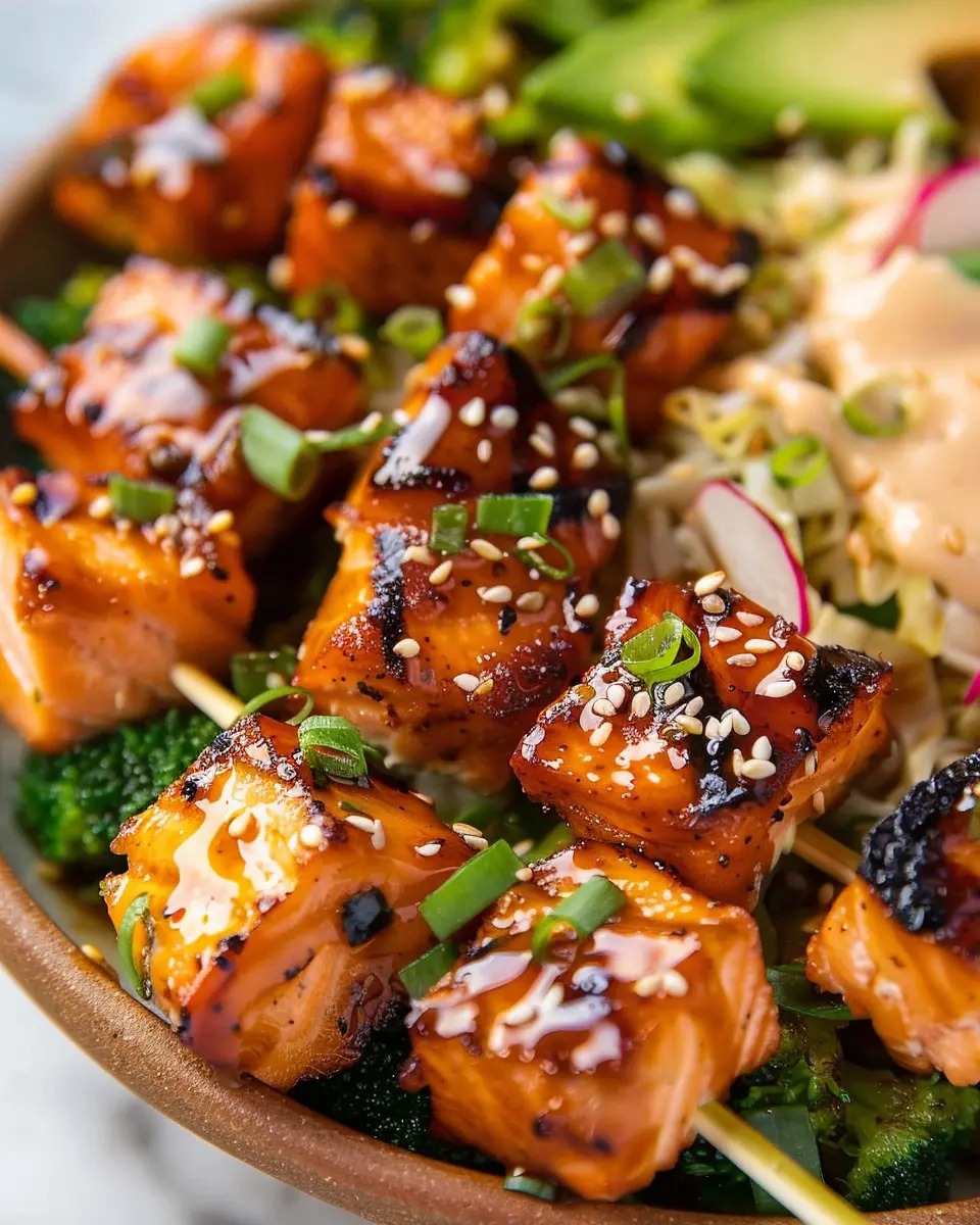 These components come together to create Bang Bang Salmon Bites that are not just tasty but also visually appealing! If you want to learn more about meal prep ideas or other delicious sauces, check out Cooking Light for some fantastic inspiration. Enjoy your cooking adventure!