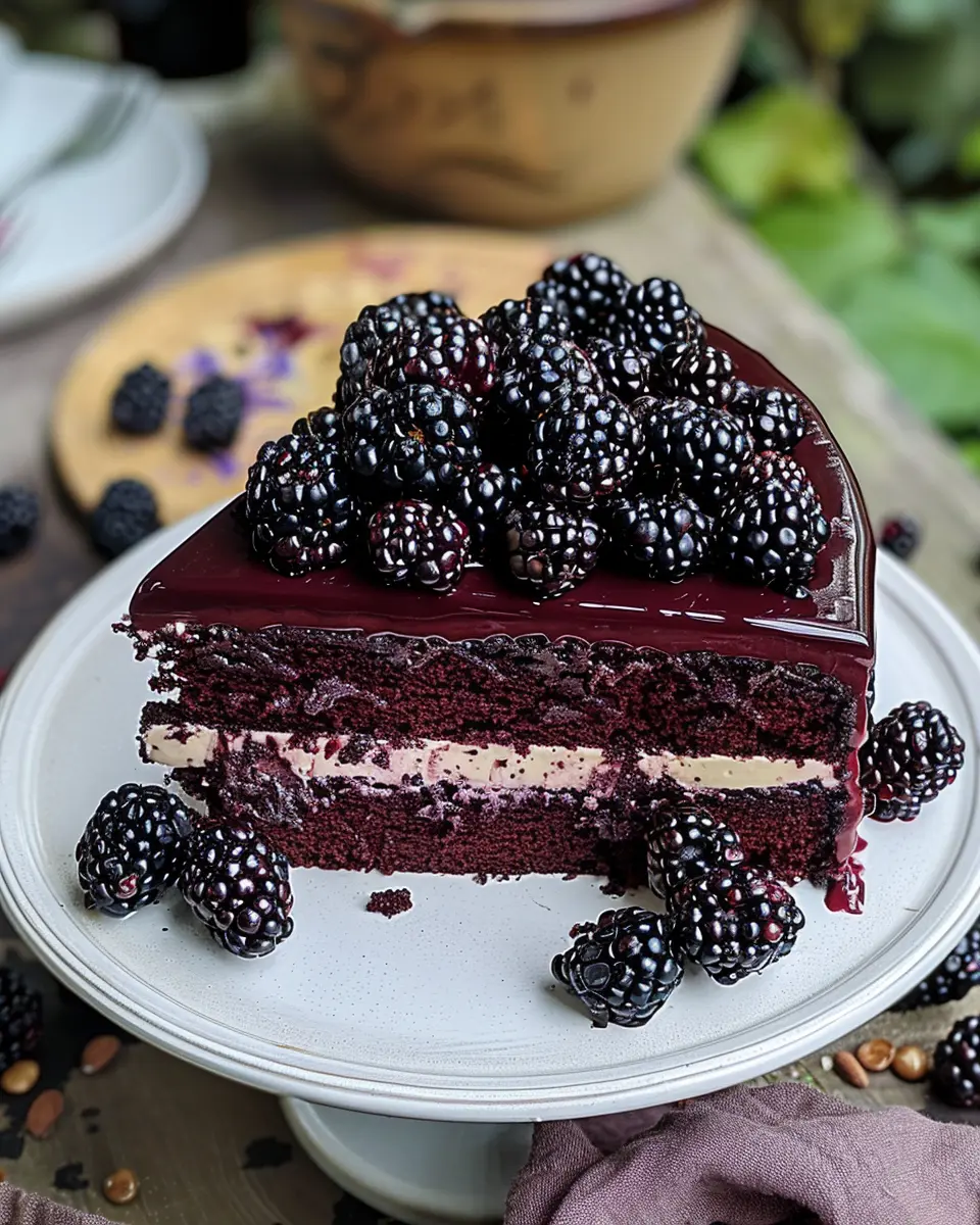 A rich and decadent Blackberry Velvet Gothic Cake that combines the flavors of chocolate and blackberry for an exquisite dessert.