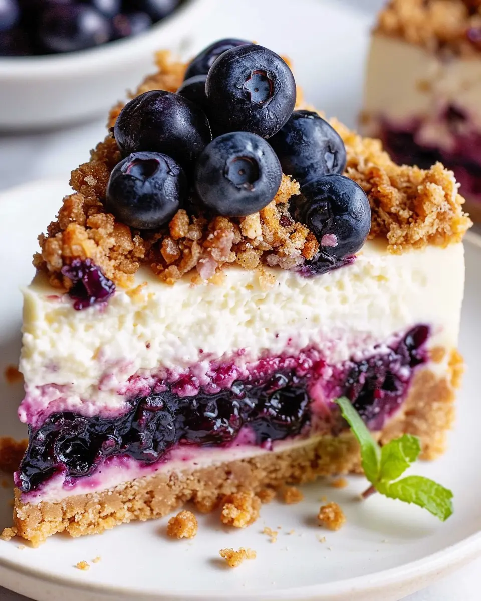 Have you ever experienced the joy of that first bite of cheesecake? It’s rich, it’s creamy, and it leaves you wanting more! Now imagine that delightful experience combined with the sweetness of blueberries and a crunchy crumble topping. There’s something magical about the contrast between the silky texture of the cheesecake and the satisfying crunch of the crumble. The acidity of the blueberries not only enhances the flavor but also adds a pop of color to the dish—a feast for your eyes as much as your palate.