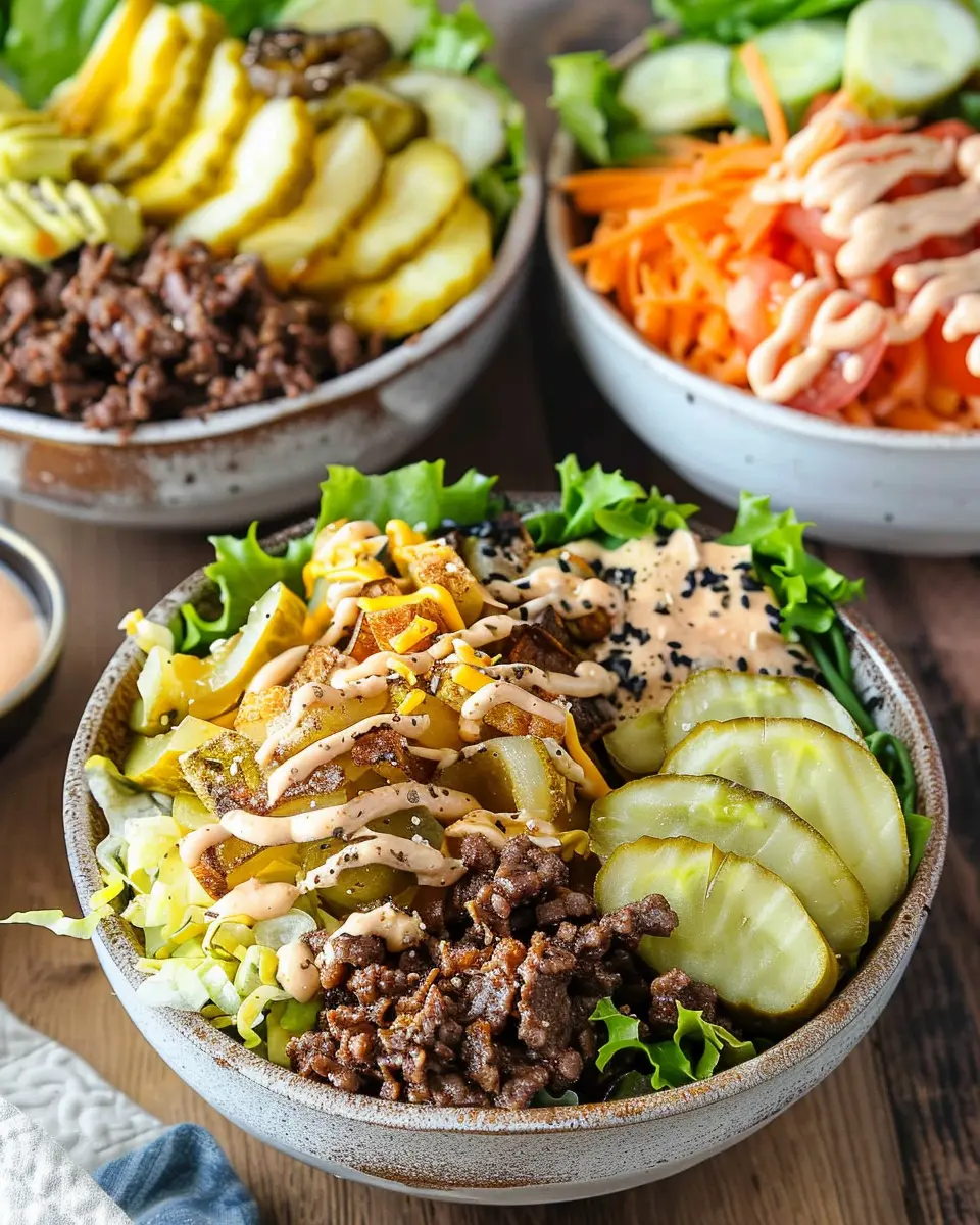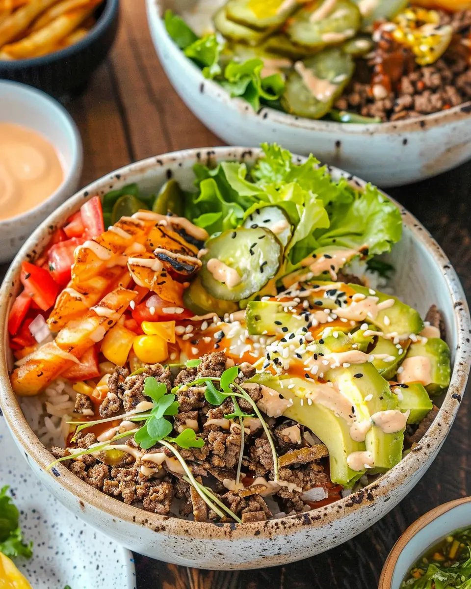 Delicious Burger Bowls that combine the essence of classic burgers in a healthier bowl format, perfect for home cooks looking to enjoy a twist on a family favorite.