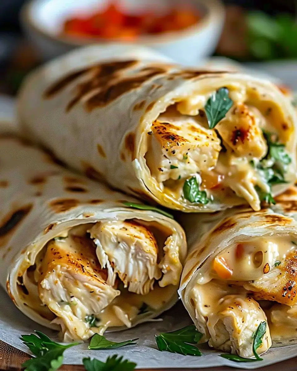 PrintCheesy Chicken Garlic Wraps: Easy Comfort Food for All