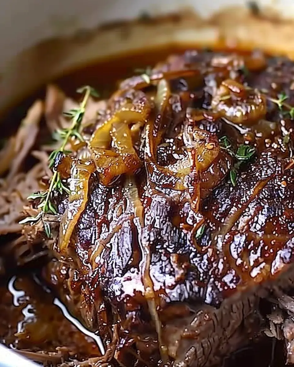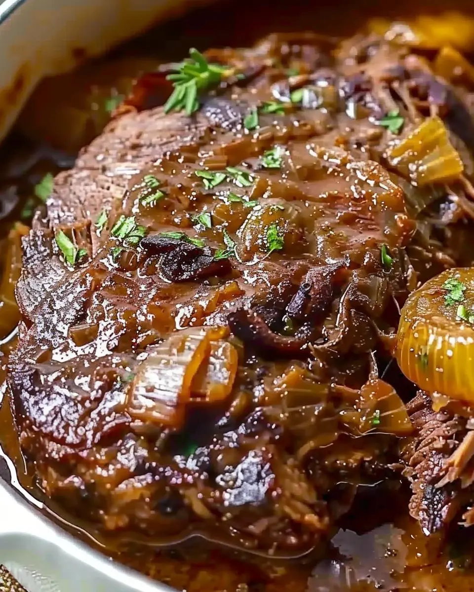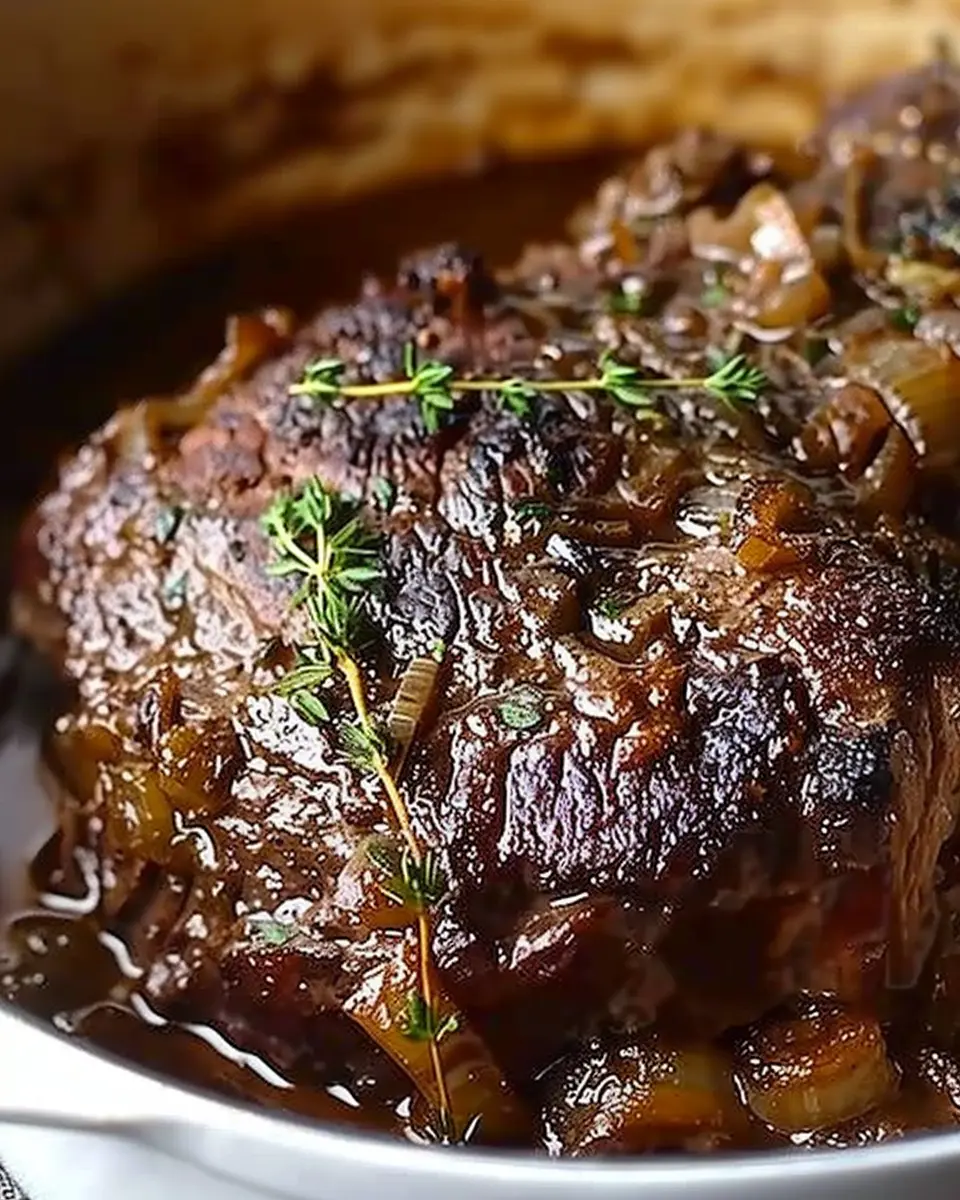 Comforting French Onion Pot Roast with Turkey Bacon Delight
