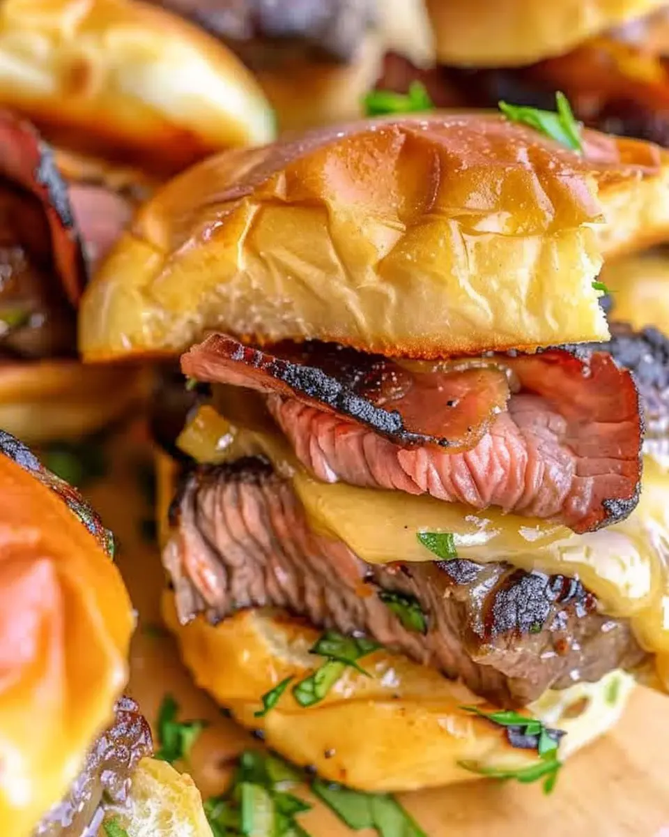 Delicious Cowboy Butter Steak Sliders featuring turkey bacon and chicken ham for a unique twist on a classic dish.