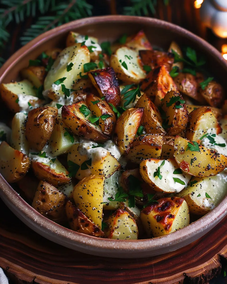 A delicious and comforting side dish featuring tender roasted potatoes coated in a creamy mustard sauce.