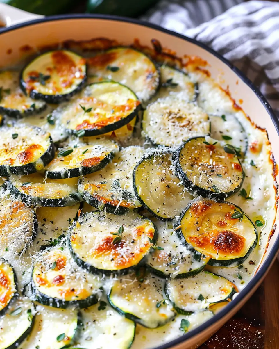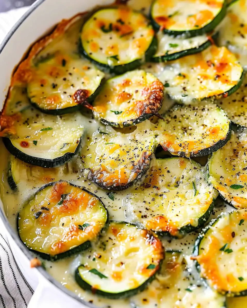 Enjoy this creamy and cheesy dish that brings out the delicious flavor of zucchini, perfect for any meal.
