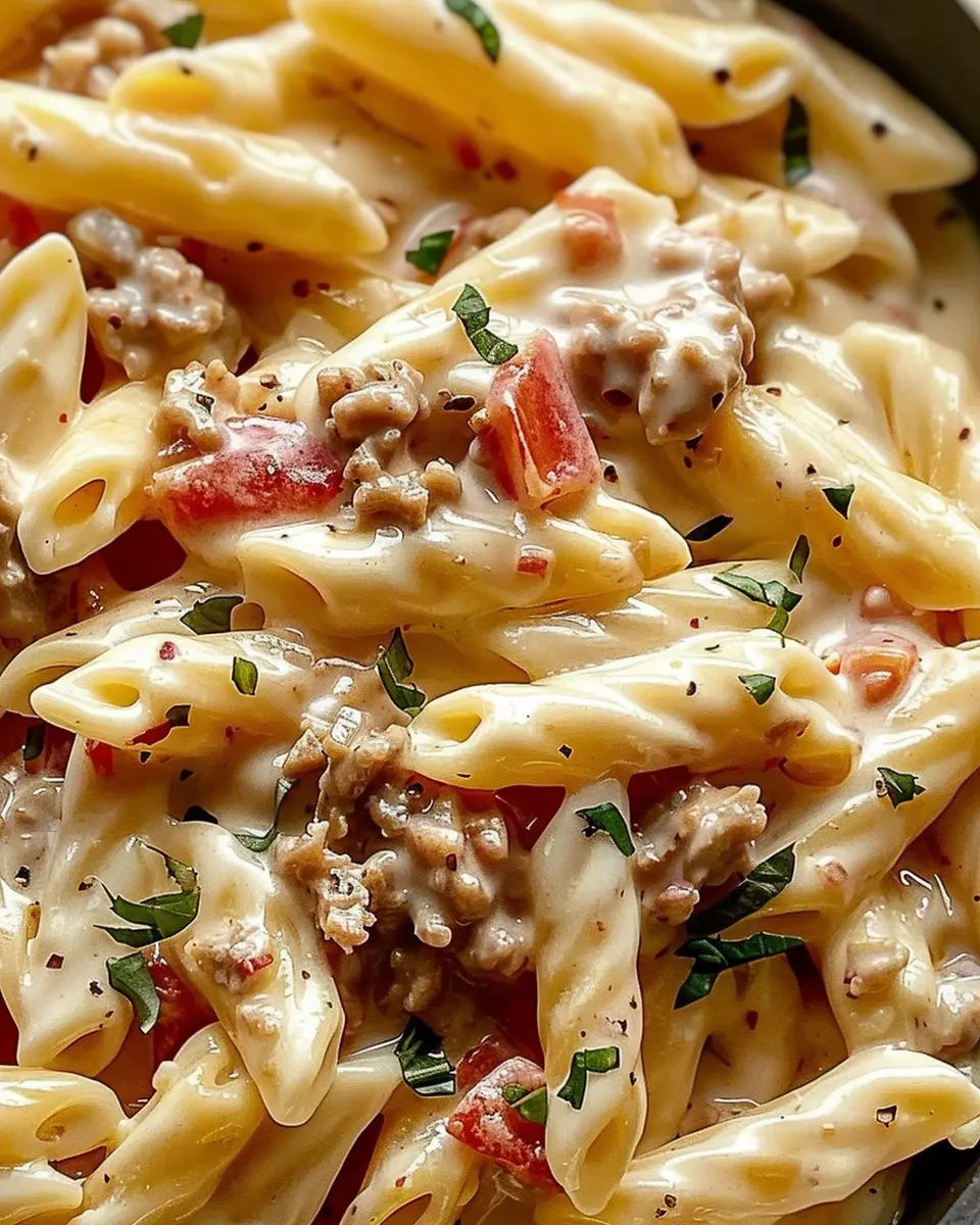PrintCreamy Rotel Pasta: Indulgent Dish with Turkey Bacon and Chicken Ham