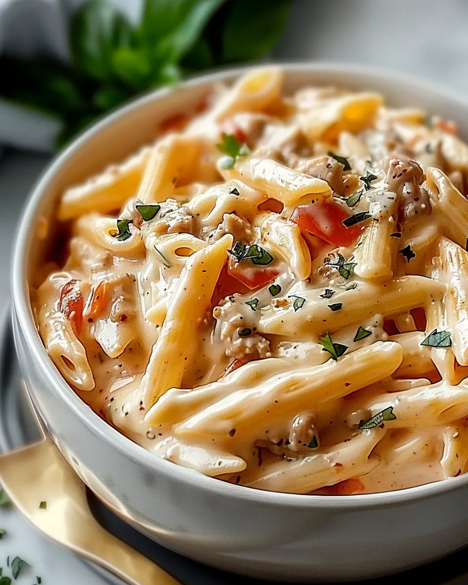 Elevate your creamy Rotel pasta presentation and make dinner a memorable affair. Try serving it in individual bowls with a sprinkle of freshly chopped parsley or cilantro for a pop of color. Consider adding some crispy turkey bacon on top for that extra crunch and smoky flavor—your friends will love it! A dollop of sour cream or a drizzle of lime juice can elevate the flavor even further.