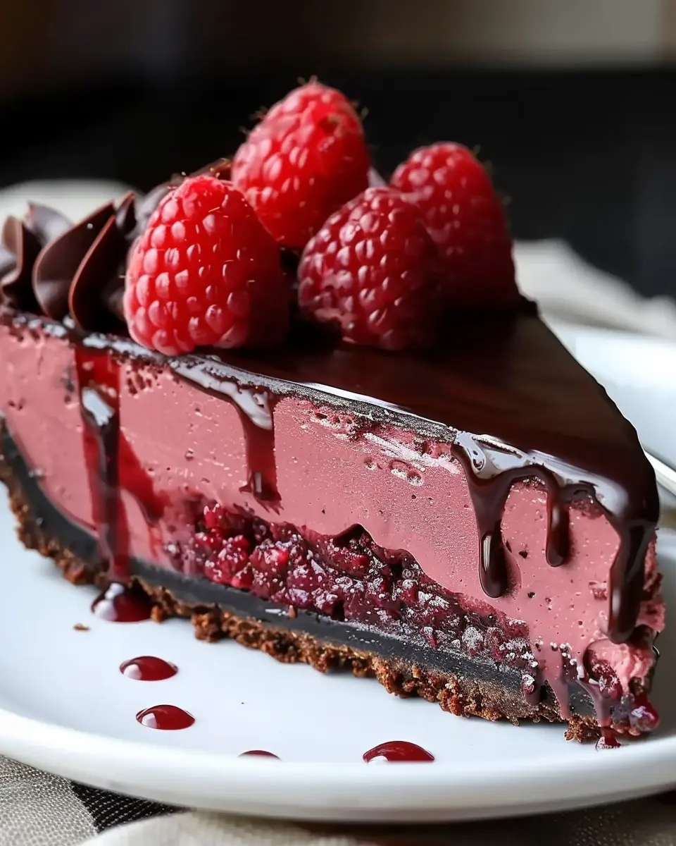 Indulge in Decadent Dark Chocolate Raspberry Cheesecake