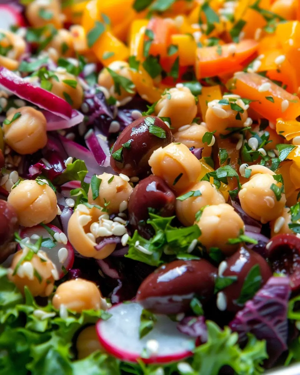 Once your ingredients are prepped, it’s time for some assembly! In a large mixing bowl, add the chickpeas and black beans. These powerhouses not only provide great texture but also offer protein and fiber, which are crucial for staying full and satisfied. Beans are a fantastic ingredient for anyone looking to maintain a balanced diet, and various studies have shown their positive impact on overall health (Source: Harvard Health).