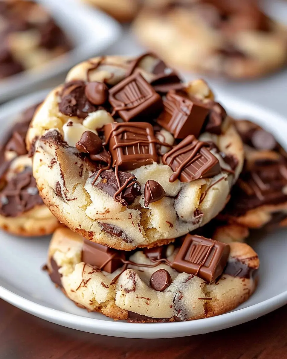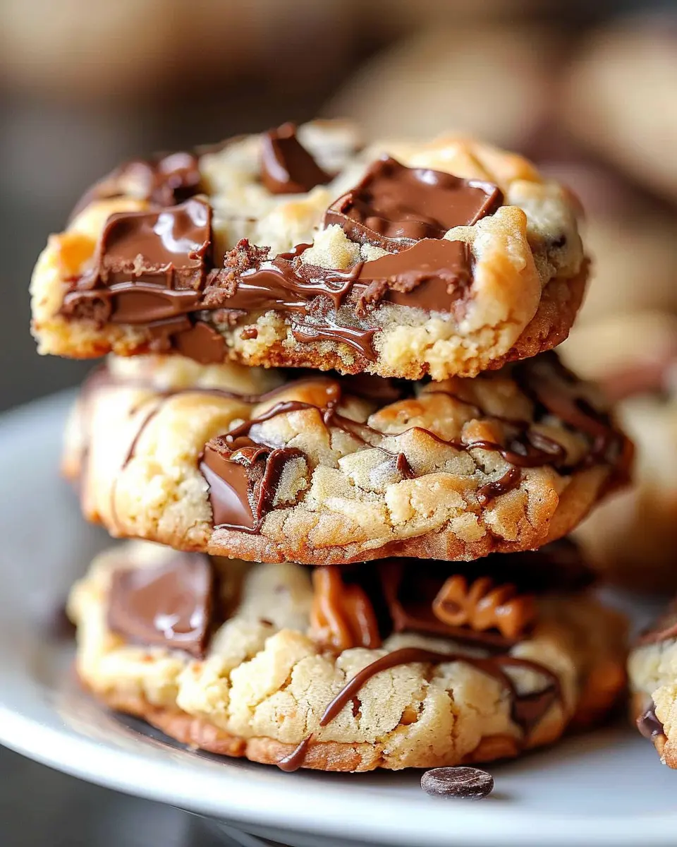 These cookies are a feast for the senses—a chewy, soft center that melts in your mouth, paired with a creamy cheesecake layer and the irresistible crunch of peanut butter cups. Just imagine biting into one of these creations: the gooey filling oozes out, and you can almost hear the sweet symphony of flavors playing in your mouth. It’s a cookie experience like no other!