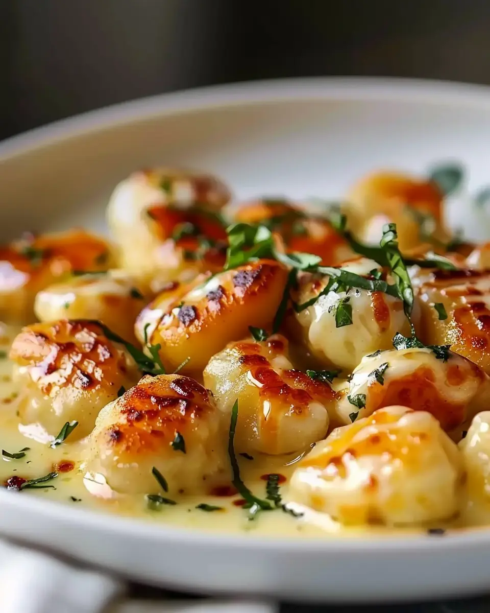 - Serve it while it’s still warm for the best taste experience. The combination of warm, crispy gnocchi and creamy sauce is simply unforgettable.