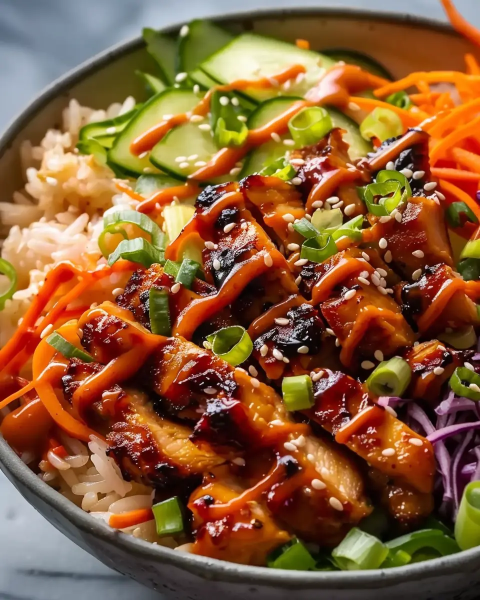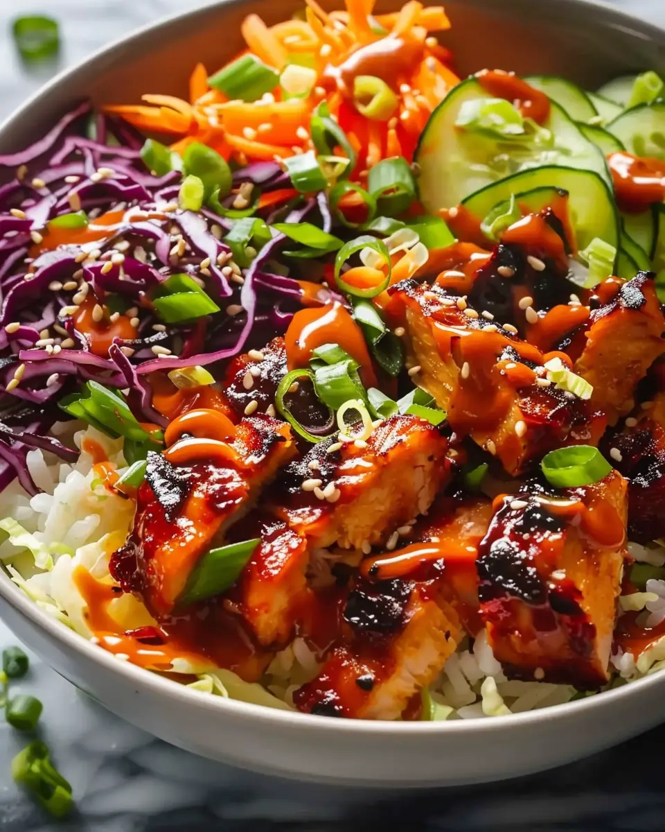 Garnish with Style: A sprinkle of sesame seeds or a drizzle of the gochujang sauce can make your Korean BBQ Chicken Bowls look gourmet.