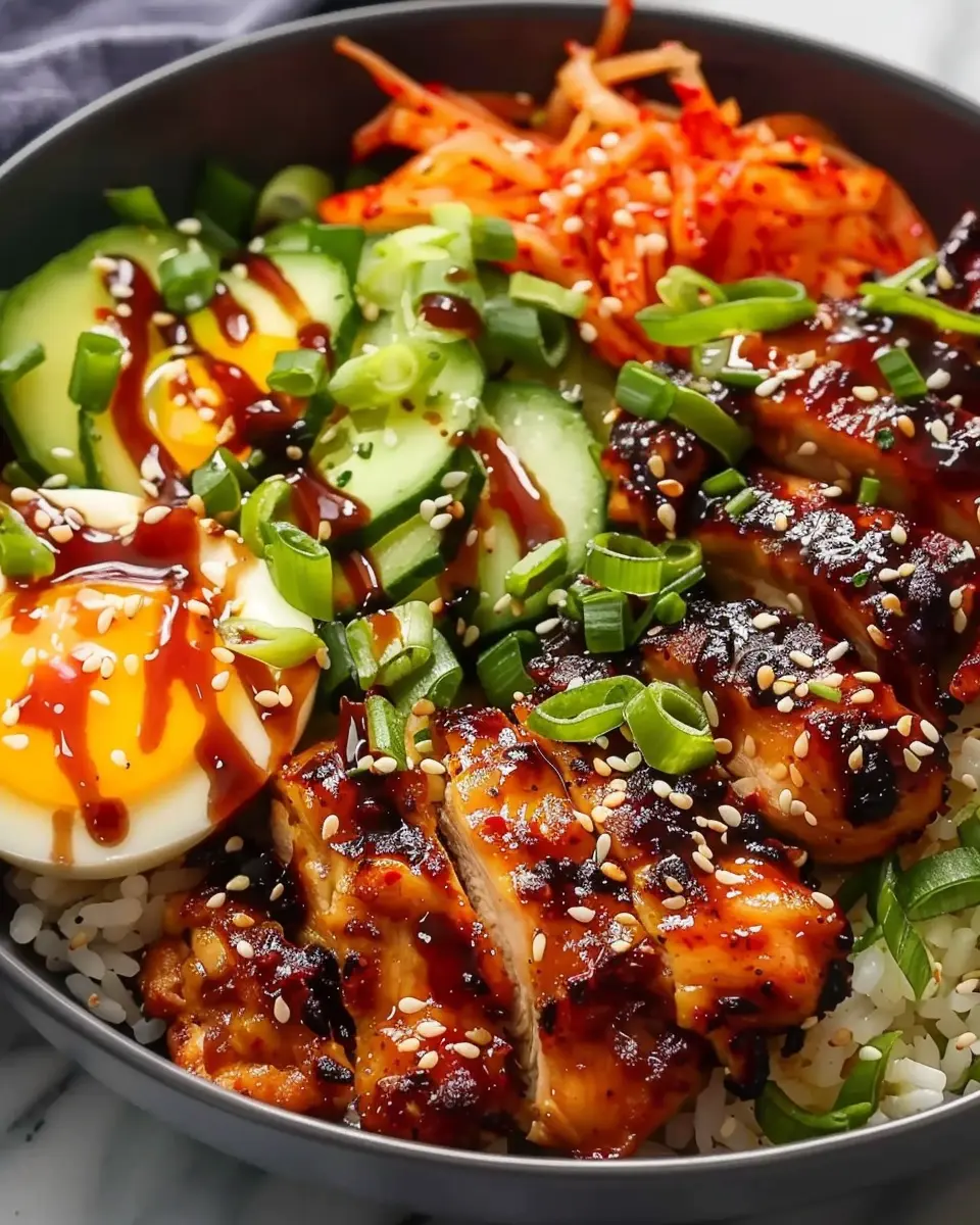 Enjoy a delectable Korean BBQ Chicken Bowl that is perfect for any occasion. This recipe is simple and packed with flavor, making it a great choice for family meals or gatherings.