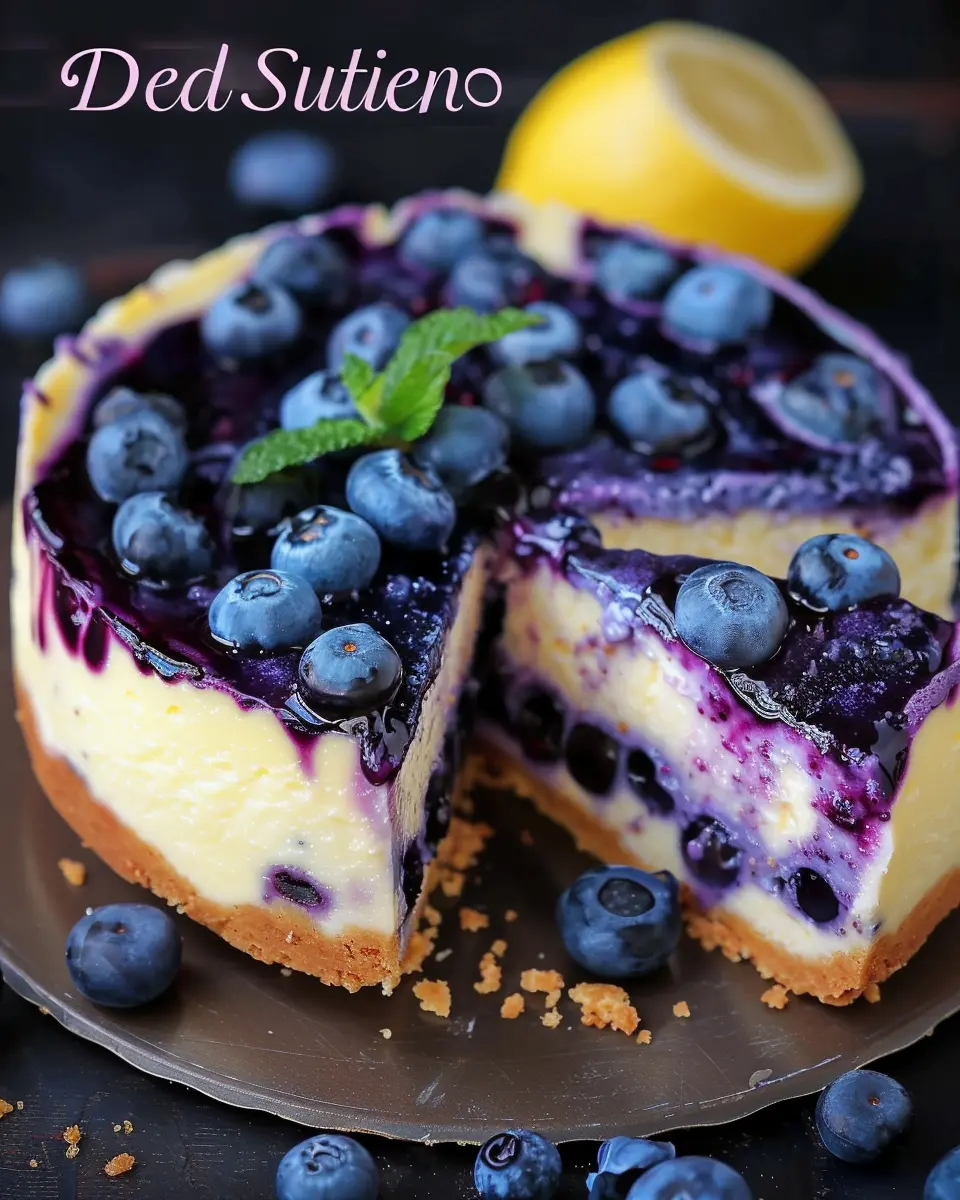 A luscious dessert combining the flavors of lemon and blueberries for a creamy cheesecake experience.