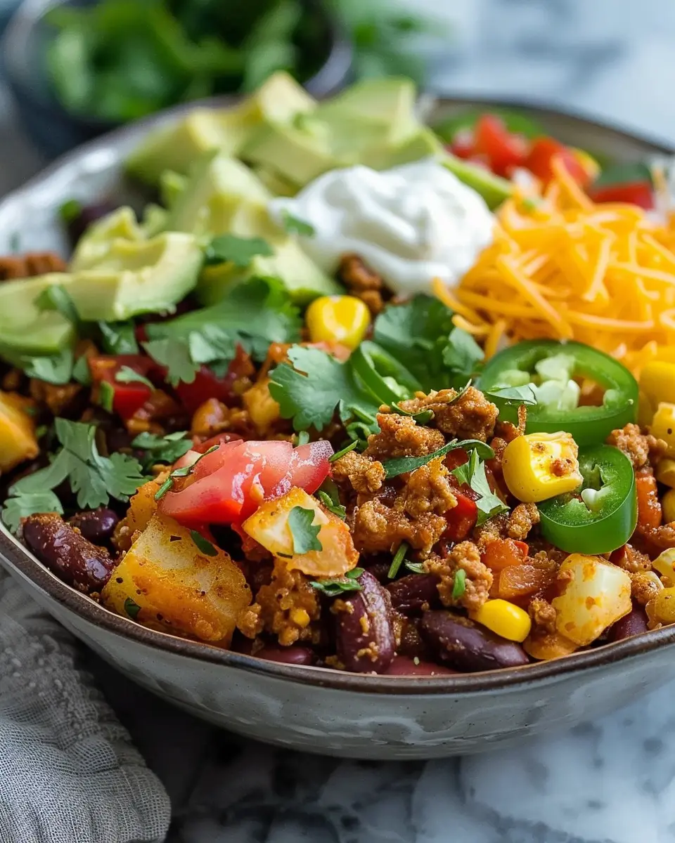 First off, it doesn’t require hours in the kitchen. In just about 30-40 minutes, you can whip up this hearty dish. Perfect for busy weeknights, this Loaded Potato Taco Bowl allows you to customize each bowl just the way you like it. Want a bit of spice? Toss in some jalapeños. Prefer a milder flavor? Stick to classic toppings like cheese and sour cream. The options are limitless!