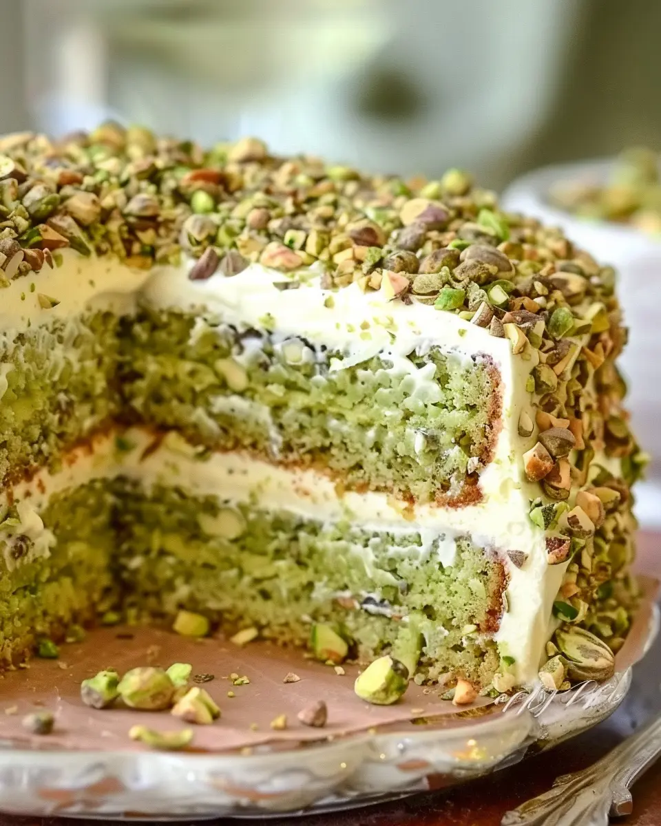Versatile for Any Occasion: Whether it’s a summer picnic or a winter holiday gathering, this cake adapts beautifully. The muted green from the pistachios adds a nice pop of color, making it a perfect centerpiece for your dessert table.