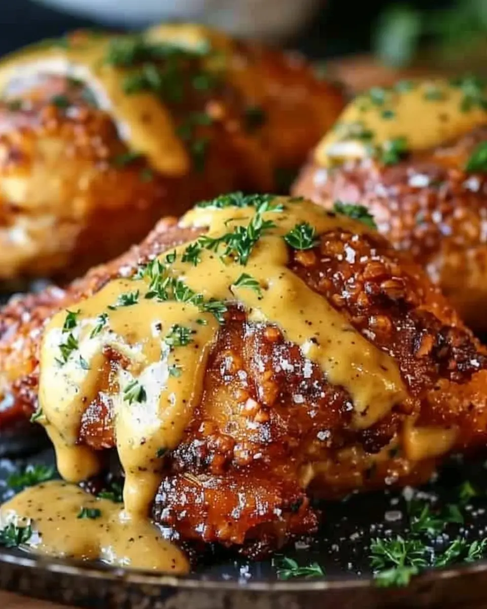Once your chicken is perfectly baked, it’s time to plate up! Lay the chicken breasts on a serving dish and drizzle that creamy mustard-cheddar sauce on top. Add a sprinkle of fresh parsley for some color if you’re feeling fancy.