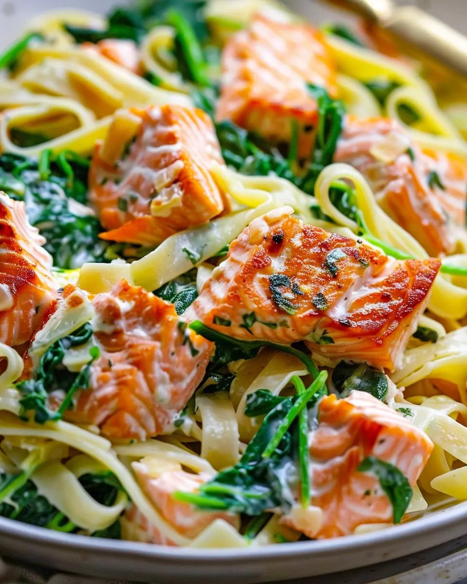 PrintSalmon Spinach Pasta Dish: A Healthy and Delicious Dinner Idea