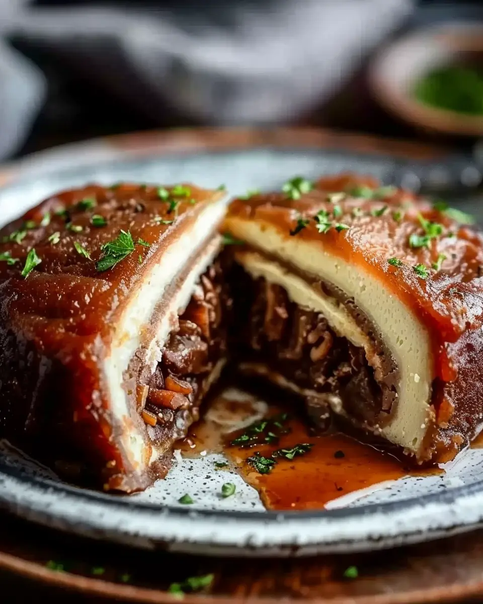 Fresh Greens: A simple arugula salad drizzled with olive oil and lemon can be a refreshing accompaniment. This balances out the richness of the beef and the savory filling.