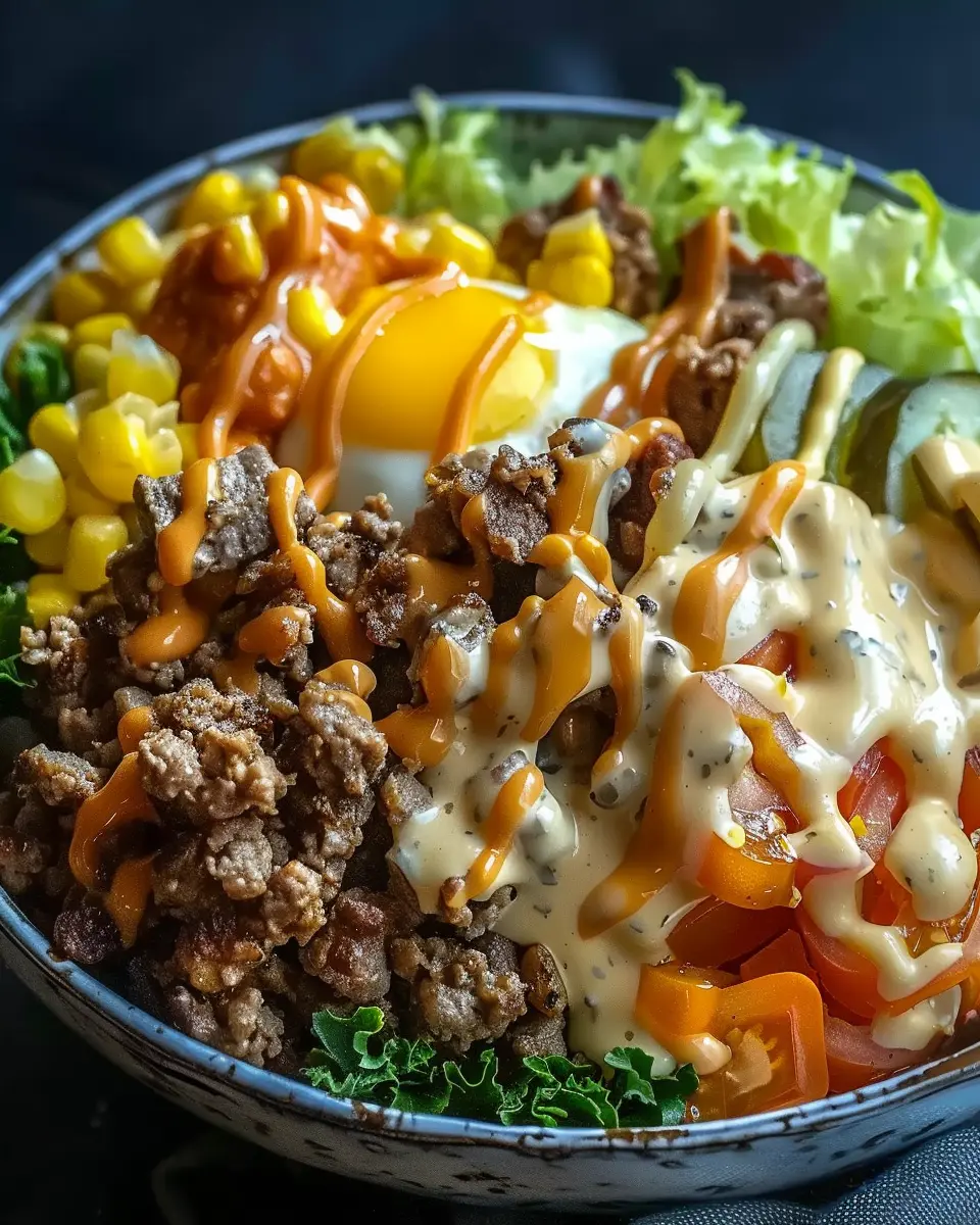 Making it at home allows you to customize each layer—think turkey bacon and chicken ham for protein, tossed on a bed of crispy greens. Plus, the fresh toppings and homemade sauce elevate every bite! So, are you ready to elevate your dining experience? Dive into this bowl and enjoy the deliciousness of a classic burger with a twist! For more meal inspiration, you might want to check out Cooking Light or Bon Appétit for fresh takes on everyday meals.