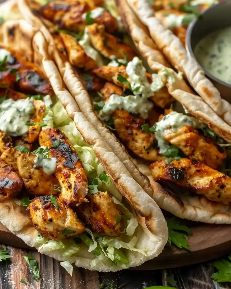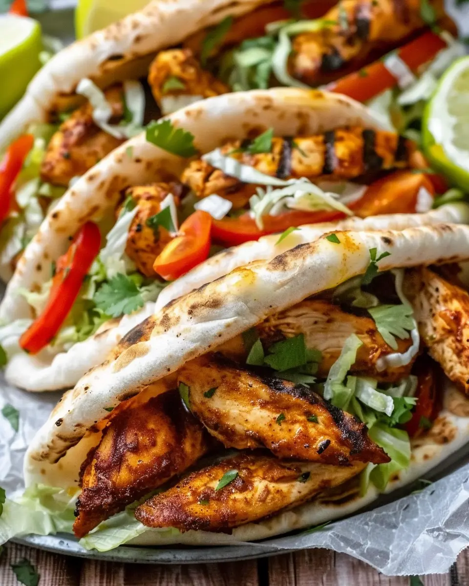 Once your chicken is roasted and your slaw is ready, it’s time to assemble these fabulous pitas. Start with whole-wheat pitas; they’re healthy and provide a great base for the filling. Place your pitas directly on the oven rack for about 2 minutes to warm them up—this makes them pliable and adds an irresistible toasty flavor.