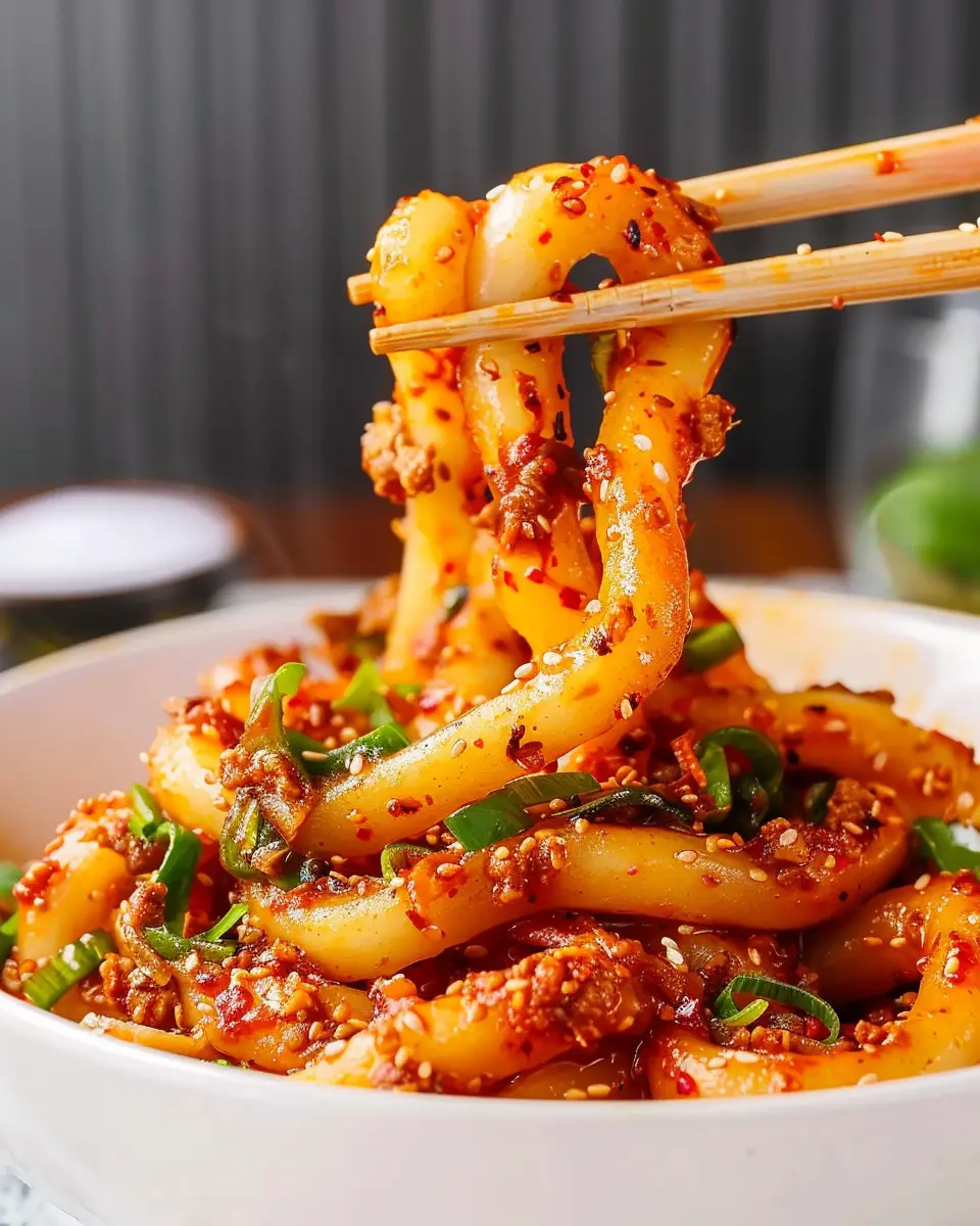 Want to make your spicy potato noodles even heartier? Consider adding some protein! Chicken karaage brings a crispy, succulent bite that pairs beautifully with the spicy undertones. If you’re plant-based or looking for a lighter option, crispy tofu can absorb the sauce’s flavors while providing a satisfying texture. You can marinate the tofu in a soy-sauce mixture before frying for an added layer of taste.
