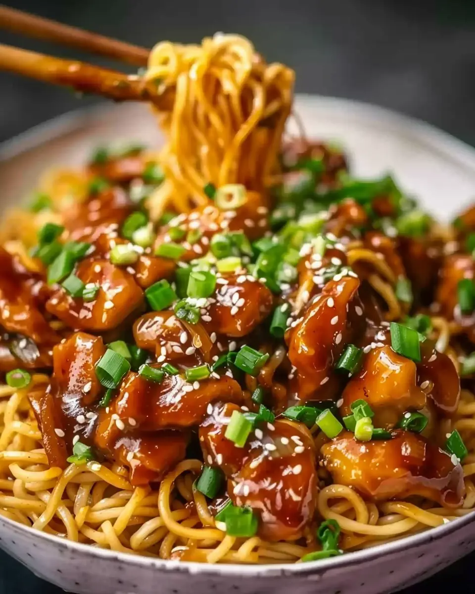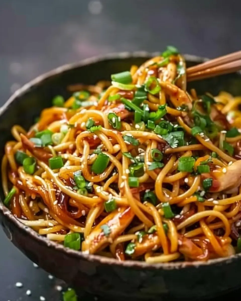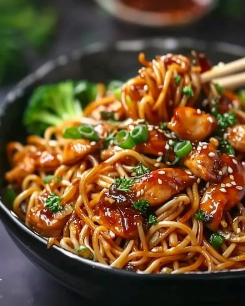 PrintSticky Garlic Chicken Noodles: Easy Recipe for Family Nights