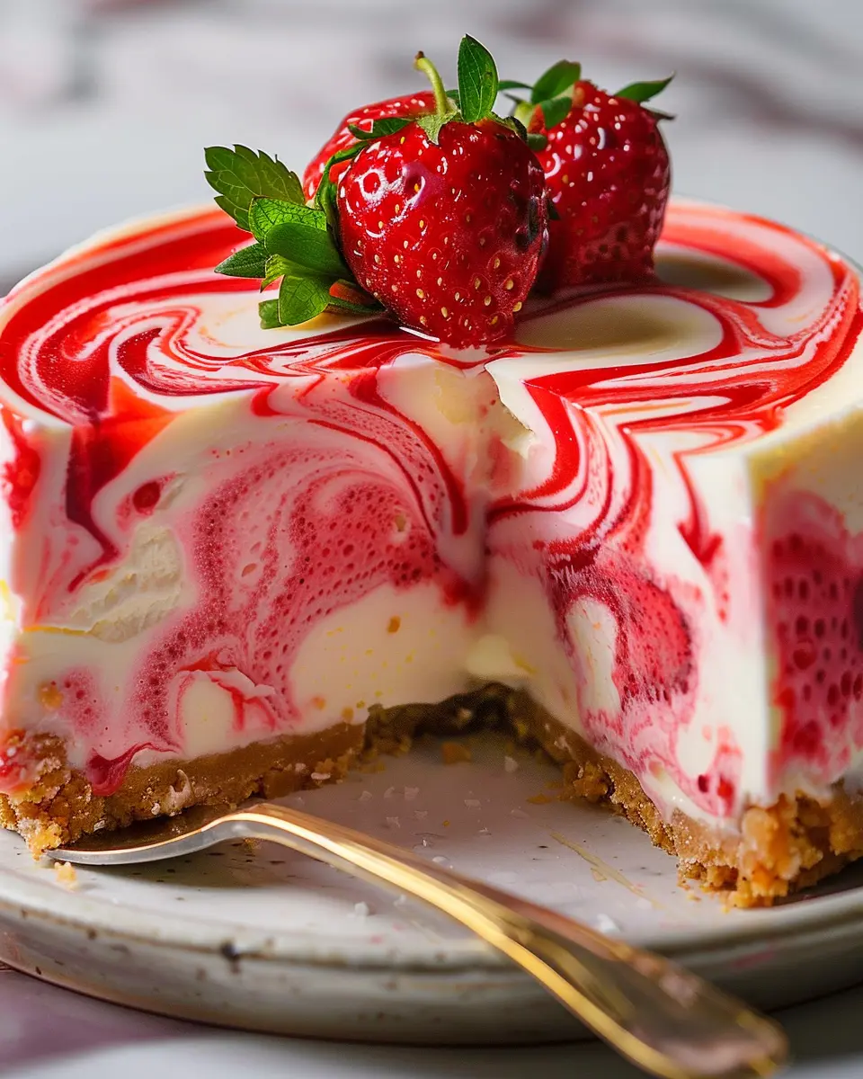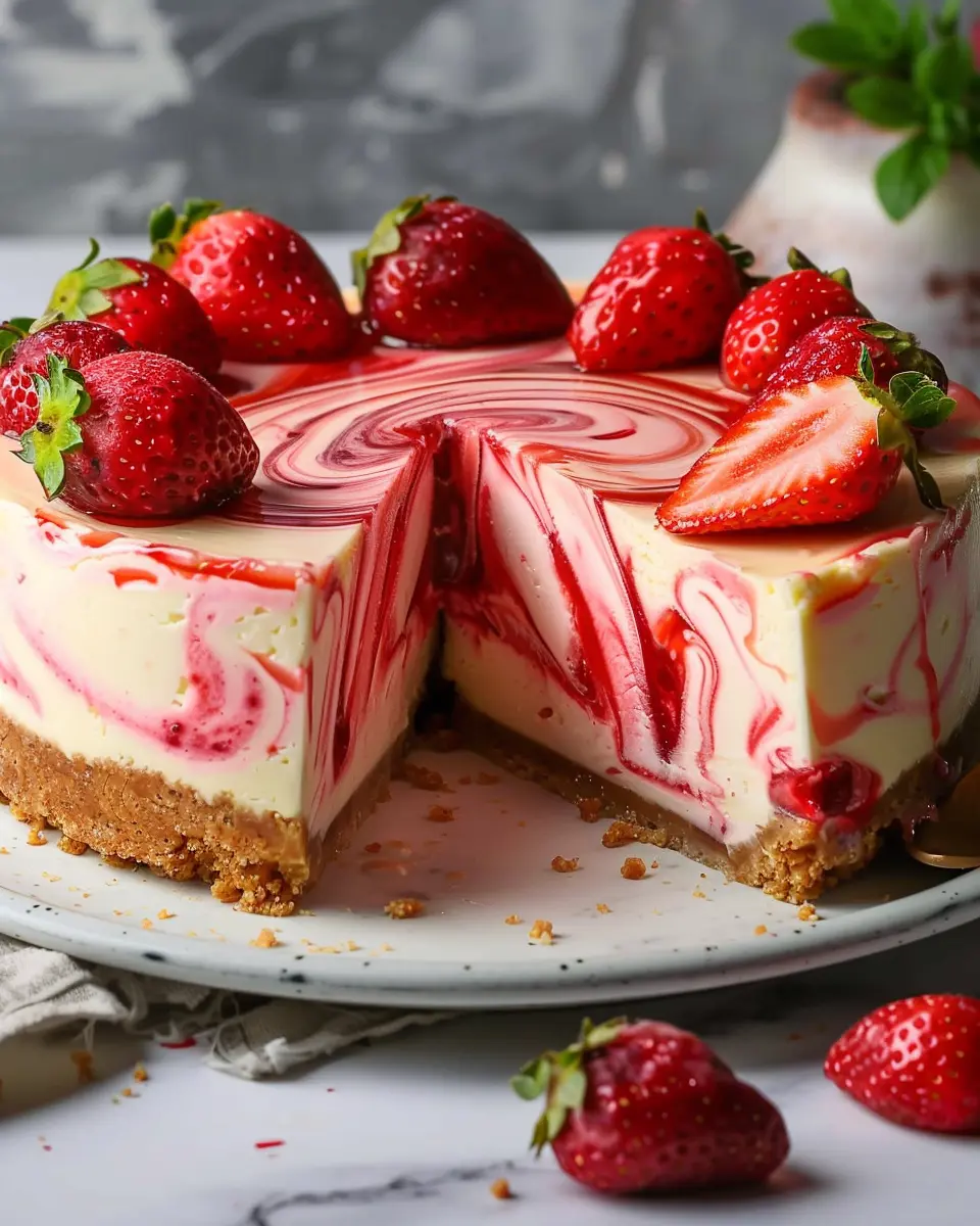This Strawberry Swirl Cheesecake is a delightful dessert that combines creamy cheesecake with a fresh strawberry swirl, making it perfect for any occasion.