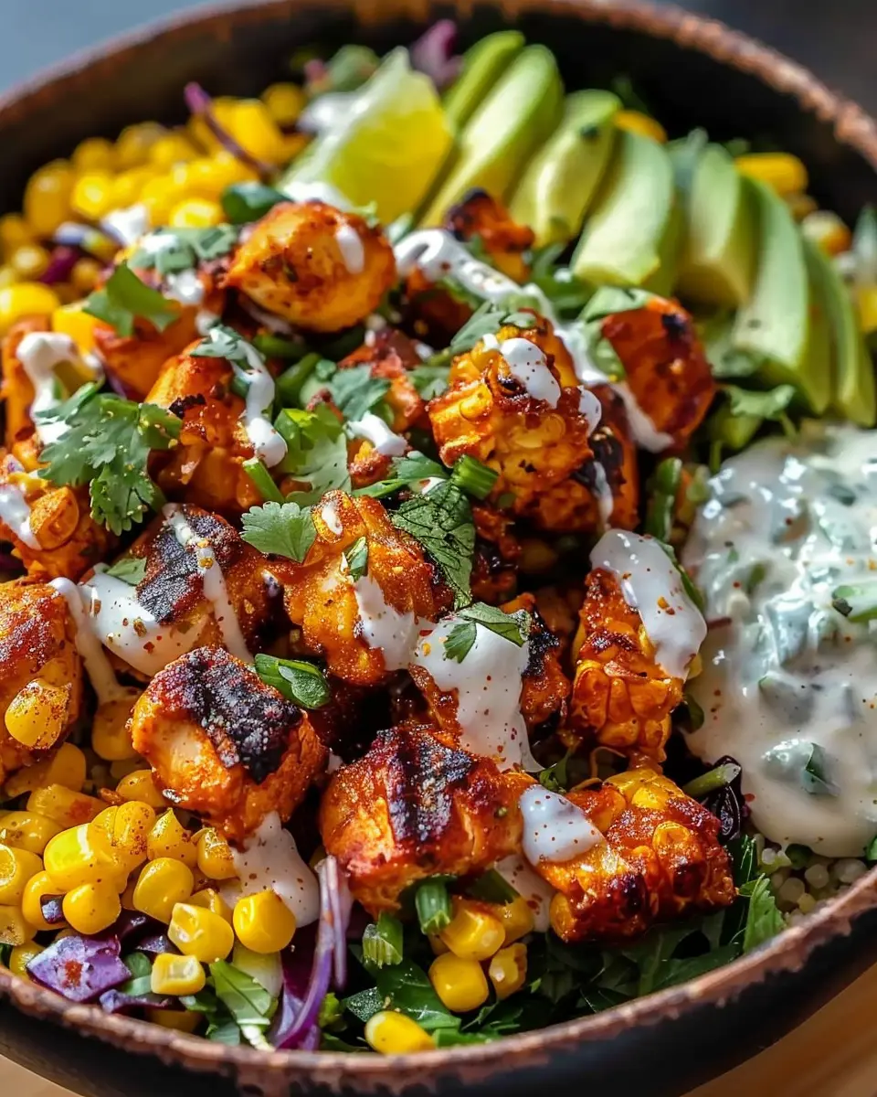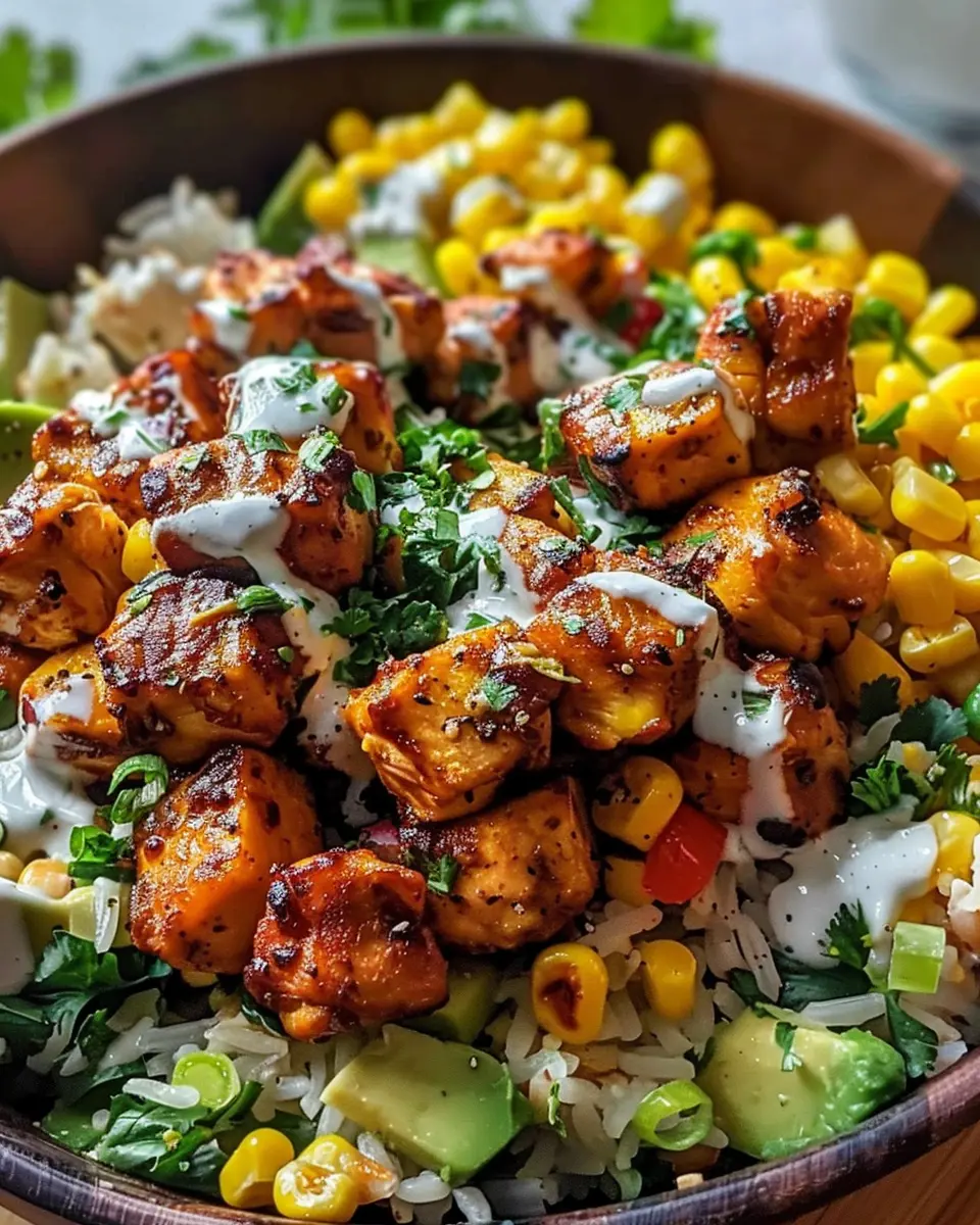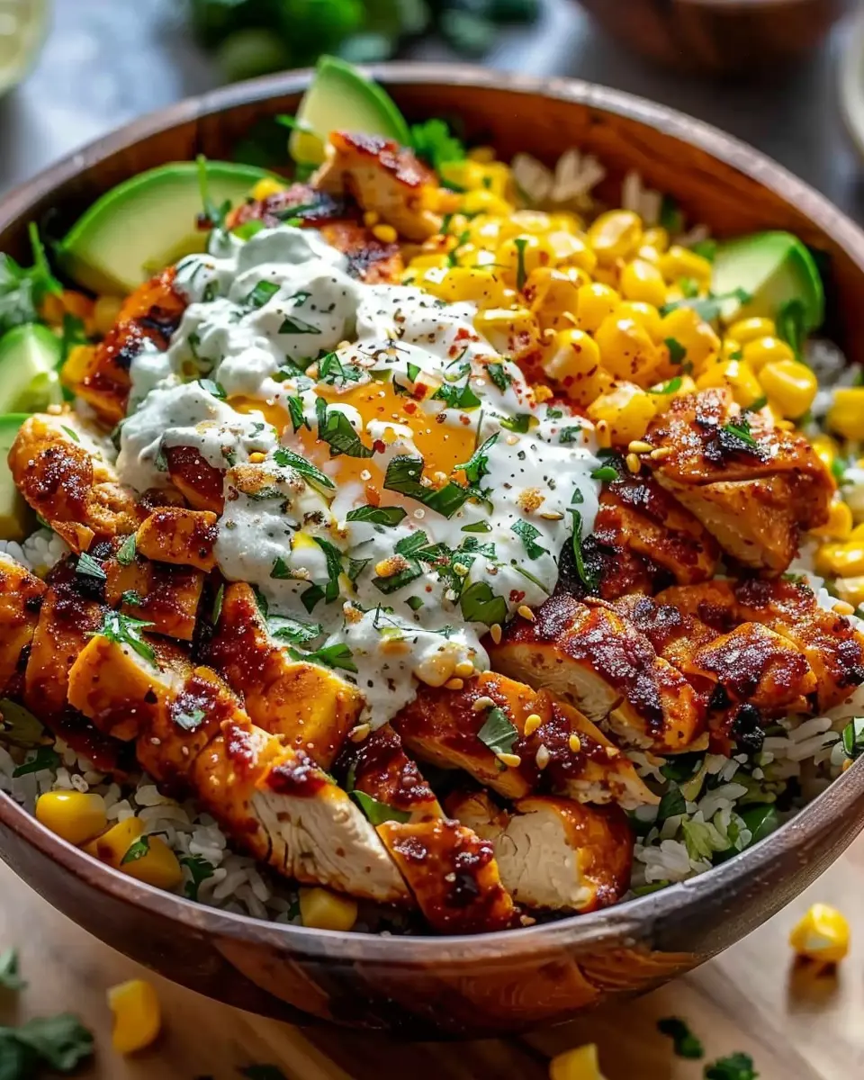 A delicious and easy-to-make street corn chicken bowl perfect for flavor lovers.