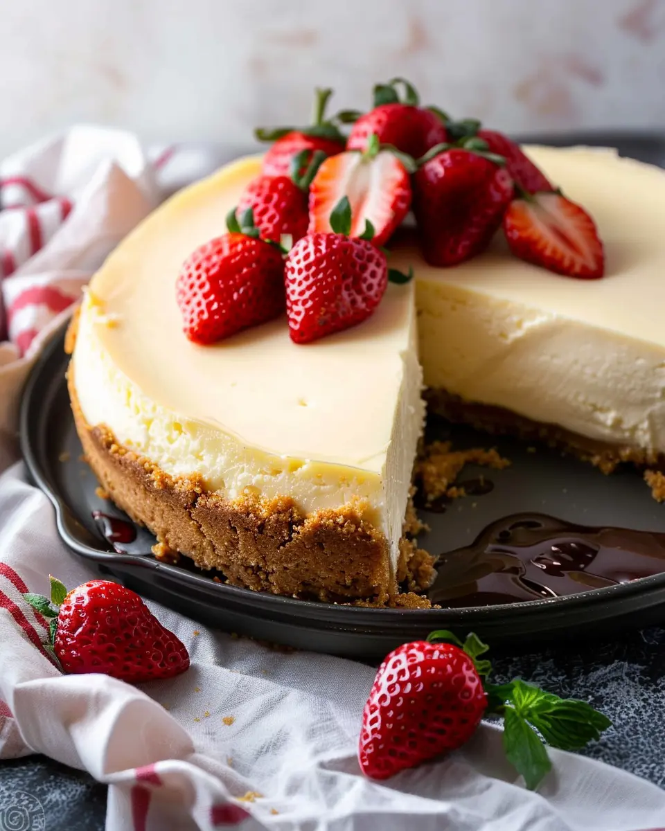 Chocolate Drizzle: Melt some high-quality dark chocolate and drizzle it over your cheesecake before serving. This will add a rich cocoa flavor that pairs beautifully with the creamy filling.